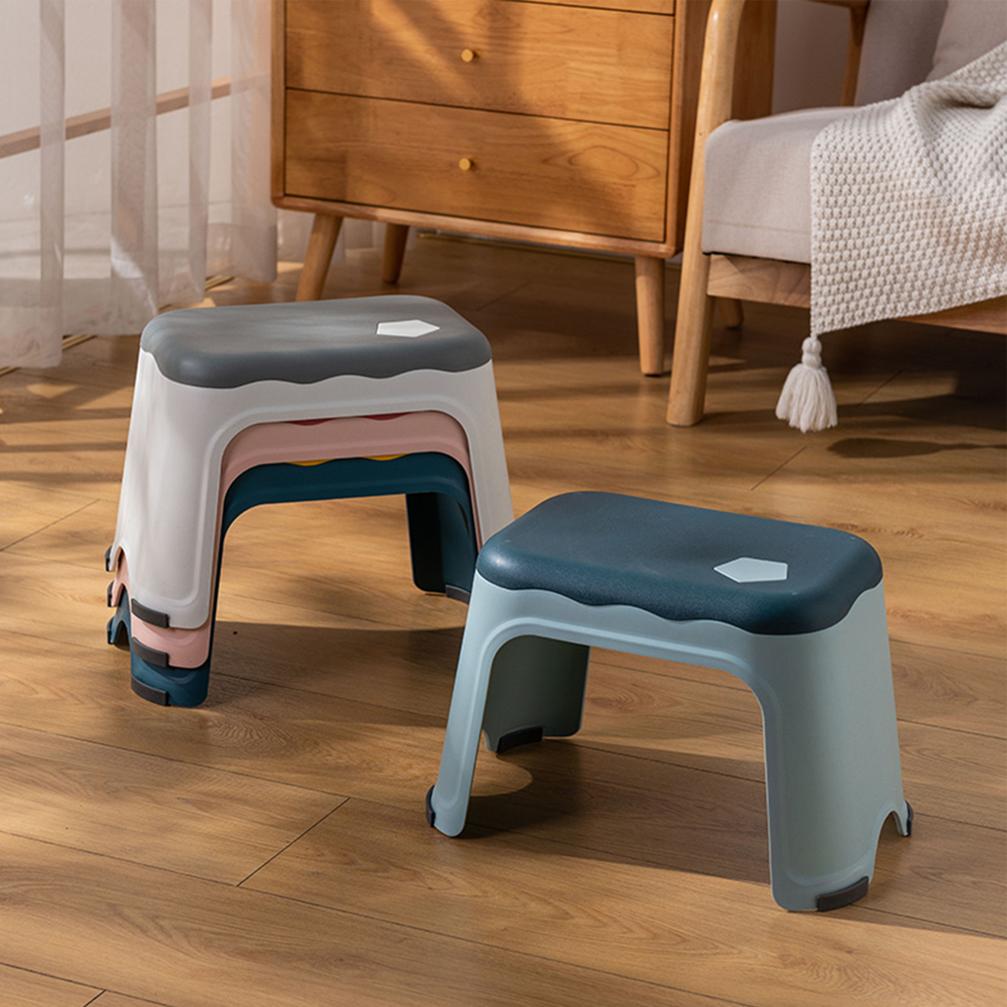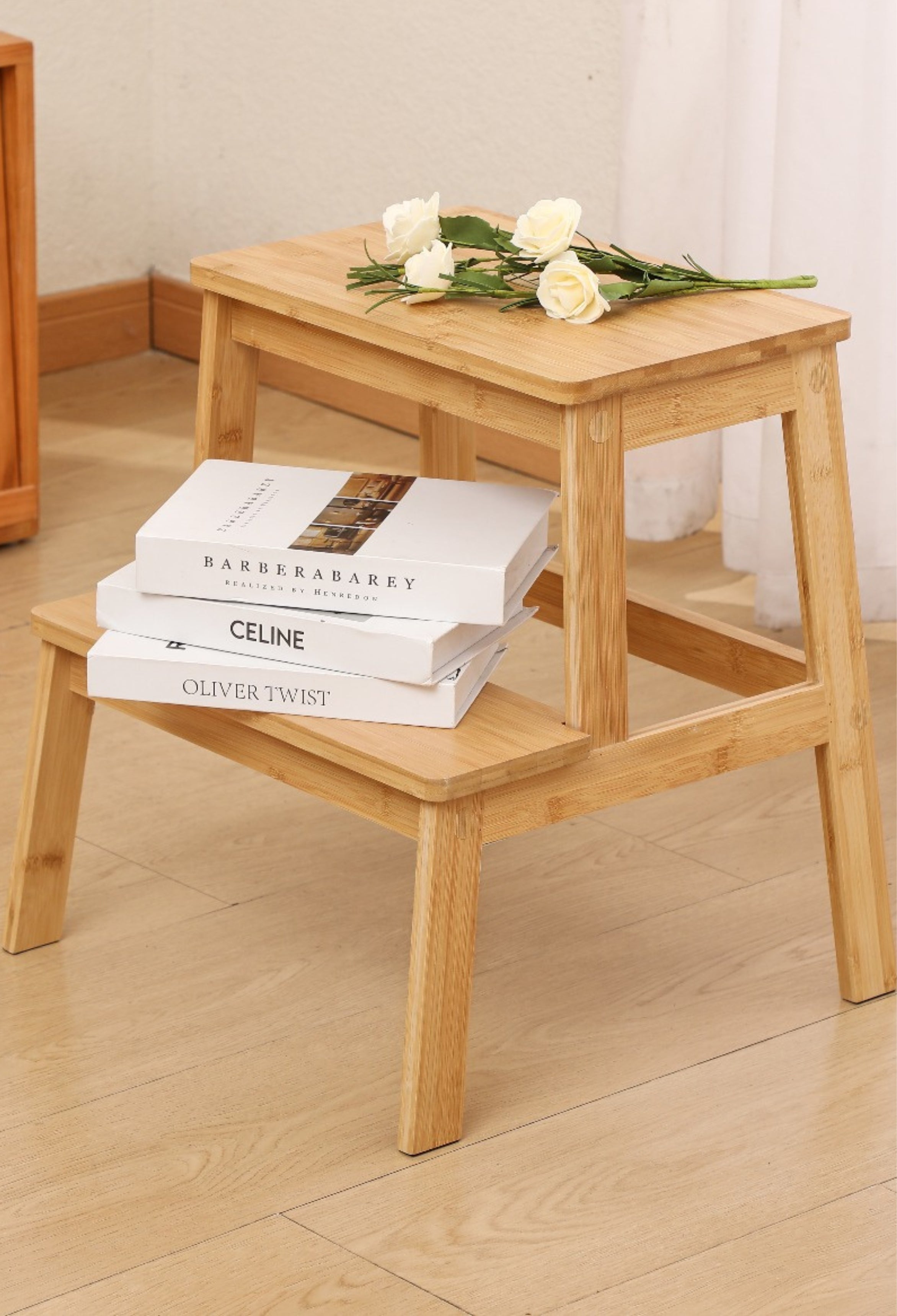 Het krukje is simpel in elkaar te zetten en ziet er mooi uit. Neemt het niet veel ruimte in beslag.